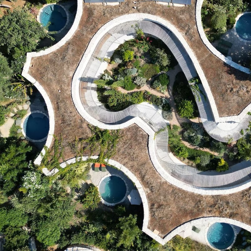 L'architecte corse Jean-Matthieu de Lipowsky a conçu ce refuge de dix chambres en jouant sur les courbes et les matériaux locaux, dialogue subtil entre héritage insulaire et lignes contemporaines. Sept chambres seulement se répartissent dans des jardins plantés d'essences méditerranéennes, préservant une intimité rare. Le spa avec piscine extérieure, jacuzzi et sauna complète l'offre, tandis que la table de l'hôtel voisin A Cheda reste accessible aux résidents en quête de discrétion absolue.