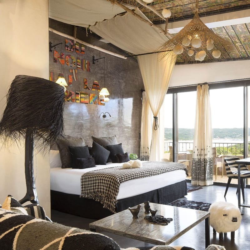 Ancien moulin à grains converti en refuge familial dominant le golfe de Santa Manza, U Capu Biancu déploie ses chambres singulières à travers des jardins sauvages jusqu'à trois plages privées cernées de falaises—l'une active, l'autre contemplative, la dernière façon Robinson. La cuisine du chef Gadio El Hadji marie produits corses du potager et accents sénégalais, tandis que les villas dispersées dans le maquis, avec piscines et cuisines d'été, garantissent une intimité absolue.