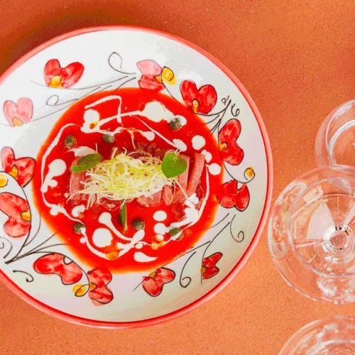 Sur une terrasse romantique dominant la piscine, la cuisine italienne épouse les produits corses avec rigueur. Poissons sauvages pêchés localement, viandes biologiques de l'île et légumes cueillis au potager en permaculture composent des assiettes franches. La carte des vins réserve de belles découvertes insulaires, tandis qu'un service attentionné accompagne les dîners prolongés sous le ciel étoilé de Bonifacio.
