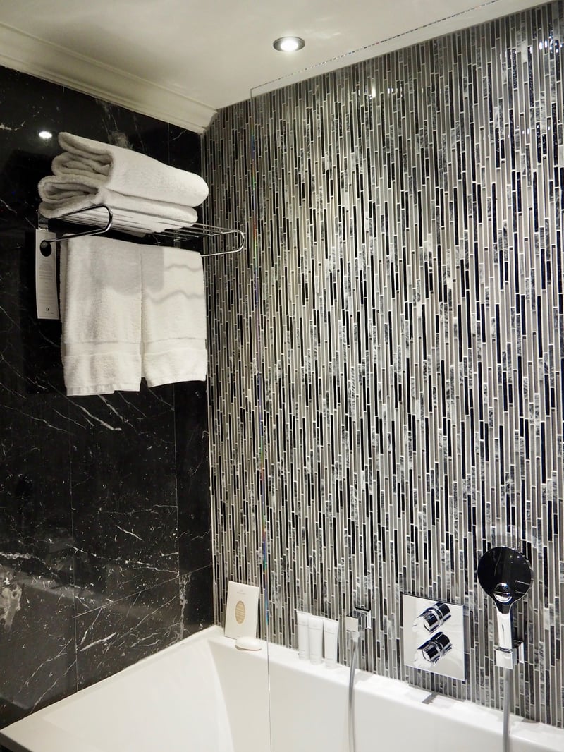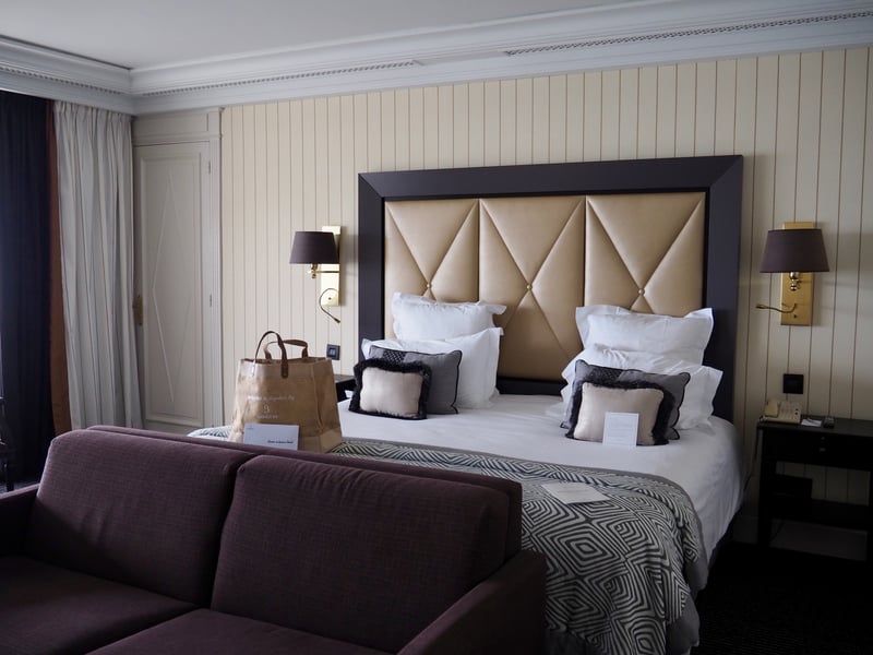 Les chambres et suites se divisent en une large gamme de catégories, en allant jusqu'aux plus prestigieuses de la Croisette comme la suite Christian Dior de 450m2. Pour cette nuit, je me suis laissée tenter par la Junior Suite Prestige Terrasse Mer. Comme son nom l'indique, cette suite de 45m2 dispose d'une grande terrasse avec une vue imprenable sur la Croisette : c'est le lieu idéal pour prendre son petit déjeuner au soleil tout en admirant la ville s'éveiller. Pour compléter cela, une salle de bain en marbre sombre et ultra spacieuse affiche un look très moderne.