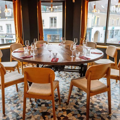 Deux chefs œuvrent en tandem dans cette adresse auxerroise au nom évocateur des vignes bourguignonnes. Leur cuisine moderne, récompensée d'un Bib Gourmand, place le légume au centre : la betterave rôtie dialogue avec un tataki de bœuf subtilement aillé. Les desserts révèlent la même rigueur, telle la poire façon amandine au cardamome vert et yuzu, confection méticuleuse qui prolonge l'esprit du lieu.