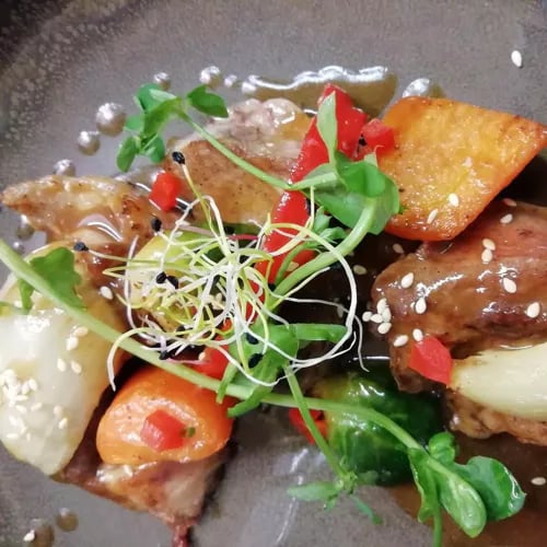 Fabien compose une cuisine moderne aux accents épicés maîtrisés, privilégiant des produits frais de première qualité. La carte du soir, renouvelée régulièrement, incite aux retours fréquents, tandis que la formule du midi séduit par son excellent rapport qualité-prix. Émilie orchestre la salle avec chaleur et professionnalisme. Une table chalonnaise prisée des connaisseurs, sans esbroufe ni artifice.