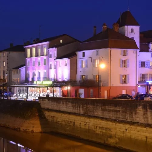Explorer FranceChalon-sur-Saône s'étire le long du fleuve là où commence le coteau de la Côte Chalonnaise. La vieille ville conserve son tracé médiéval autour de la cathédrale Saint-Vincent, ses maisons à colombages bordant la place du même nom et les ruelles descendant vers les quais. Premier port fluvial de Bourgogne jusqu'au XIXe siècle, la ville garde cette orientation vers l'eau — lumière du matin sur la Saône, terrasses du soir face à l'île Saint-Laurent.