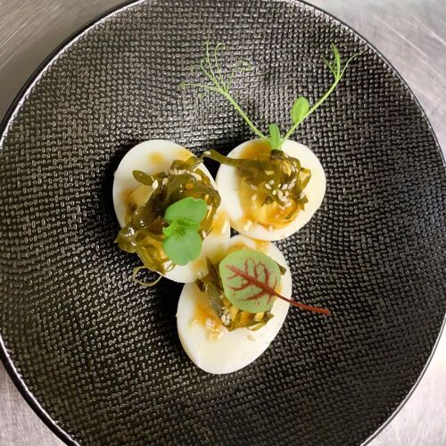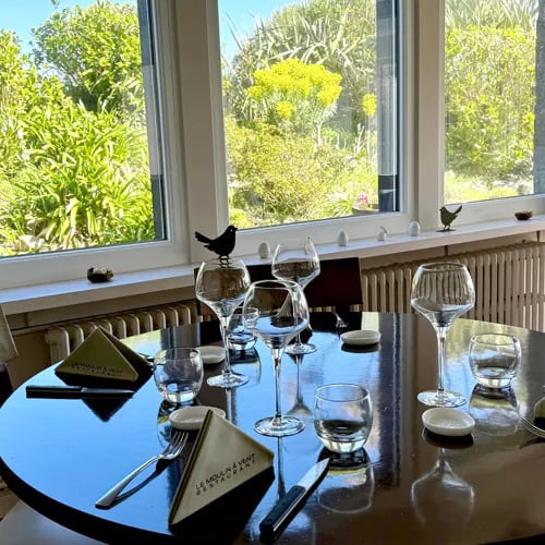 Face à l'anse Saint-Martin, cette ancienne auberge campagnarde au décor épuré compose une carte volontairement resserrée où pigeon, agneau et ormeaux du Cotentin croisent les codes de la cuisine japonaise. Le chef signe une approche inventive, précise, qui tire parti du terroir maritime environnant. Une adresse distinguée par le Guide Michelin, idéale pour qui cherche une table d'auteur face aux caps sauvages de la Hague.