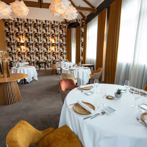 Dans ce manoir néo-Tudor aux vitraux colorés et aux boiseries précieuses, Stéphane Ringer et Rémi Gornet orchestrent une table étoilée d'une belle rigueur. Homard, langoustines, turbot et ris de veau composent des assiettes modernes, servies sous les hauts plafonds ou dans la véranda au toit ouvrant. Les chariots de fromages et de desserts prolongent le repas avec générosité, accompagnés d'une cave riche en bordeaux.
