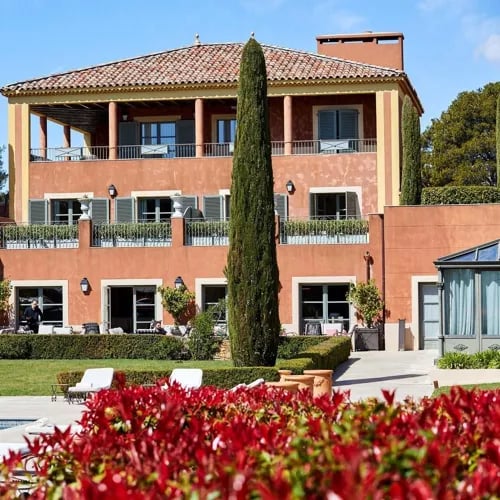 Ancien repaire des pilotes du circuit Paul Ricard, ce domaine Relais & Châteaux de 12 hectares surplombe les collines varoises depuis ses bastides ocre aux accents toscans. Fabien Ferré y déploie une cuisine triplement étoilée aux accents marins et végétaux à La Table du Castellet, tandis que le spa de 700 m²—grotte de sel, canal de Kneipp, hammam, piscine intérieure—a été sacré meilleur spa de luxe d'Europe. Quarante-trois chambres plein sud, golf six trous et vignobles de Bandol à portée de main complètent ce tableau provençal.