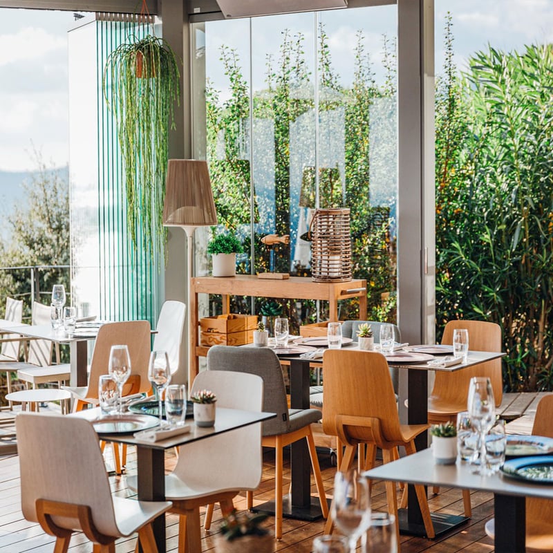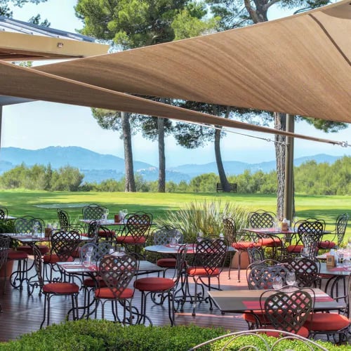 Depuis sa terrasse au bord de la piscine de l'Hôtel du Castellet, ce bistrot créatif offre une vue spectaculaire sur le golf et la végétation provençale. La carte, volontairement resserrée, privilégie les viandes maturées et poissons cuits à la braise, technique qui confère une profondeur fumée remarquable. Le dimanche, place au barbecue ; en semaine, le menu gourmand du déjeuner séduit les gourmets pressés.