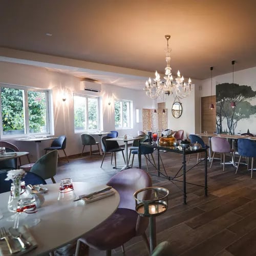 Sur la terrasse de La Villa Mauresque, face à la Méditerranée, Le Bougainvillier déploie une cuisine d'une netteté remarquable. Poissons de la côte, légumes du terroir : les produits locaux s'expriment avec franchise, portés par une technique affûtée. Le cadre — jardins luxuriants, piscine, horizon marin — compose un décor où la table prolonge naturellement la douceur du lieu.