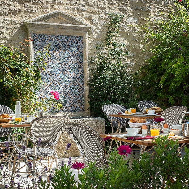 Cet hôtel particulier du XVIIIe siècle, jadis offert par Louis XVI à Marie-Antoinette, déploie 3 000 m² de jardins, cours pavées et terrasses embaumées de lavande et de jasmin. Une piscine extérieure chauffée en saison et un spa Cinq Mondes privatisable — bassin à contre-courant, jacuzzi, soins bio — complètent l'ensemble. Les chambres vont des décors d'époque au Pavillon Indien, construit en bois ancien récupéré.