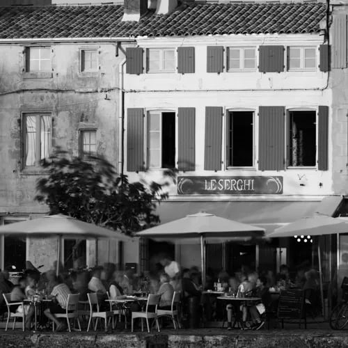 L'île vit au rythme des marées : les ostréiculteurs travaillent les parcs à l'aube, les cyclistes envahissent les soixante-dix kilomètres de pistes dès la matinée, et le soir les quais se transforment en apéritifs prolongés. Les hébergements vont des anciennes maisons de sauniers aux propriétés contemporaines face aux dunes de Trousse-Chemise. Les restaurants privilégient la pêche locale — bar de ligne, sole, et les fameuses pommes de terre cultivées dans la terre salée. La saison bat son plein de juin à septembre, mais le printemps et l'automne révèlent une île plus secrète, peuplée d'oiseaux migrateurs et de plages désertes.