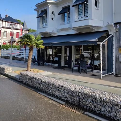 Dans la salle aux boiseries chaleureuses de l'hôtel Royal, les portraits du Studio Harcourt évoquent l'élégance du Fouquet's parisien transposée face à l'Atlantique. La carte célèbre les codes de la brasserie—sole meunière, plateau de fruits de mer, filet de bœuf béarnaise, profiteroles—tout en proposant des assiettes plus légères, en écho à la vocation thalasso de la station. Une table de caractère pour gourmands en villégiature.