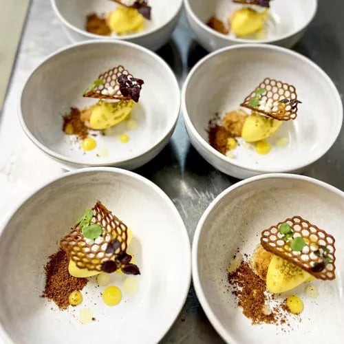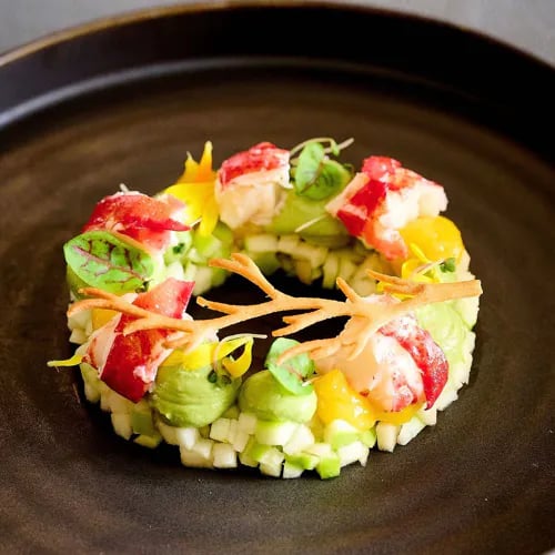 Une façade entièrement tapissée de verdure signale L'Antiquaire aux portes de Laval. Le chef Jérôme Lebreton y déploie une cuisine moderne généreuse, ponctuée d'associations audacieuses—ris de veau et kumquats en tête. La carte propose également un menu entièrement végétarien, témoignant d'une vraie polyvalence aux fourneaux. Distinction Assiette Michelin, atmosphère chaleureuse et accueillante.