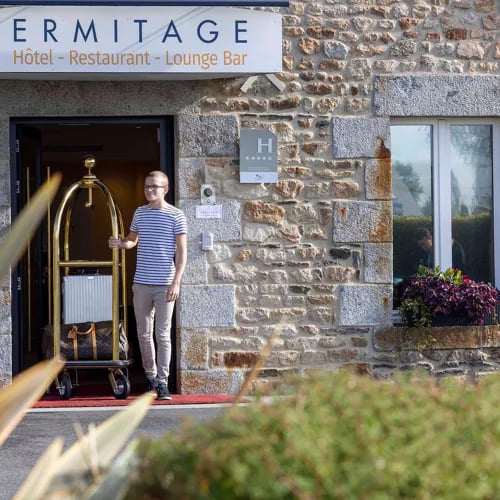 Sept chambres seulement dans cette villa en pierre du XIXe siècle, revendiquant le titre de plus petit cinq-étoiles d'Europe. Baignoires sur pieds, têtes de lit sculptées et balcons privés composent un décor d'époque raffiné. À La Table de l'Ermitage, les saveurs atlantiques dominent : huîtres normandes, homard, saumon fumé Kaviari. Cave à vins et soins spa sur demande parachèvent l'expérience pour qui privilégie l'intimité.