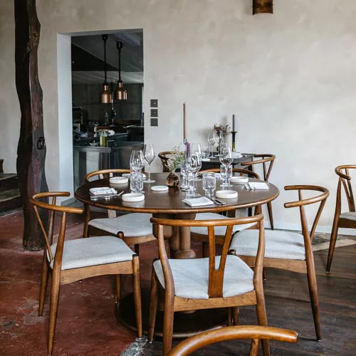 Dans un ancien presbytère du XVIe siècle à Servon, le chef Thomas Benady compose un menu surprise unique, nourri par le potager attenant. Légumes du jardin, herbes aromatiques et poissons de petits pêcheurs locaux façonnent une cuisine végétale aux accents marins—betterave métamorphosée, saucisse de céleri aux herbes. Une étoile Michelin et une Étoile Verte couronnent cet engagement envers le terroir. Réservation indispensable.