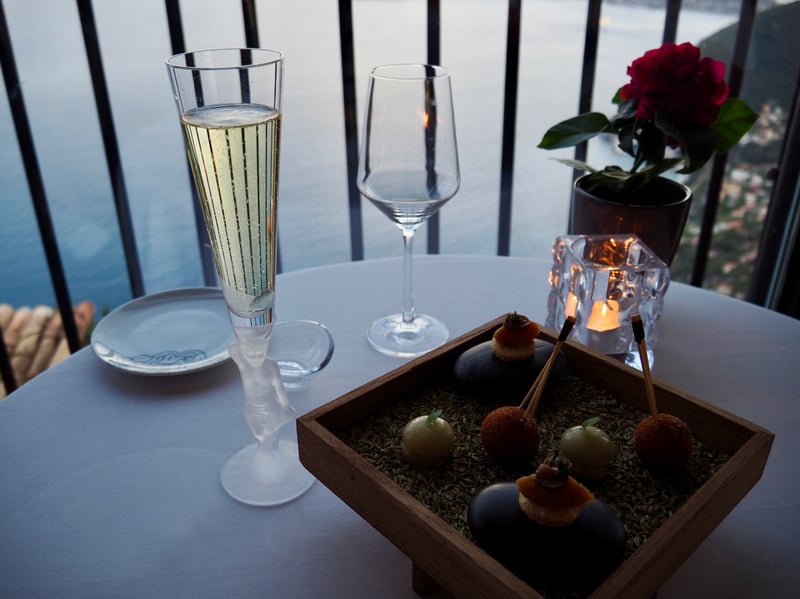 Le soir venu, nous avons découvert le restaurant gastronomique du Château Eza. Nous nous sommes installés derrière les baies vitrées avec toujours cette vue panoramique à couper le souffle. En pleine saison, on peut même profiter des petits balcons en alcôves pour être encore plus près de la vue. On se régale ici avec la cuisine française et méditerranéenne interprétée par le nouveau chef Matthieu Gasnier, fraichement arrivé début 2018. Il est notamment passé par de nombreuses maisons étoilées de la région, cela présage d'être une belle découverte culinaire!