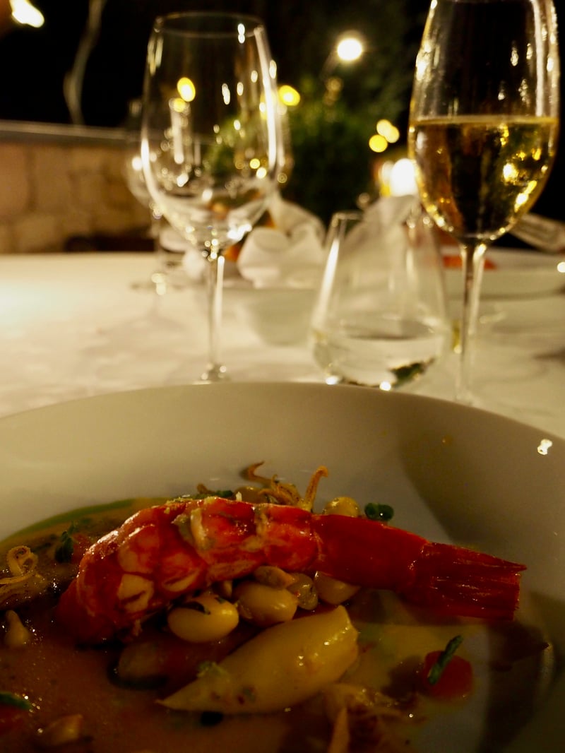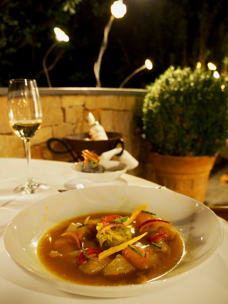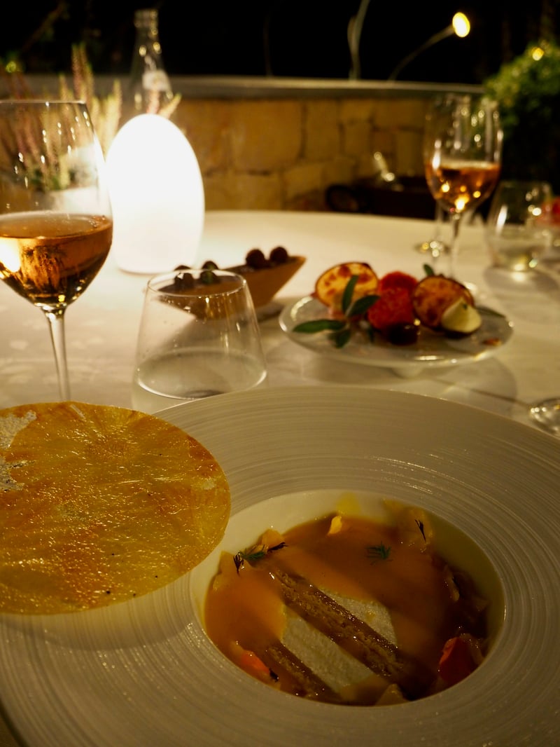 Au Faventia, la cuisine est orchestrée par le chef Philippe Jourdin qui a été récompensé par un macaron Michelin. En premier lieu, c'est ce cadre de toute beauté qui m'a bluffé ! Installés sur la terrasse avec une coupe de champagne à la main, nous profitons de la fraîcheur de la nuit tombante et du chant des cigales. La cuisine du chef sublime les produits du sud notamment dans son menu « Saveurs Méditerranéennes », le tout associé avec les meilleurs vins de la région. La belle gourmandise des plats tout comme le service impeccable ont été le gage d'une soirée gastronomique parfaitement réussie.