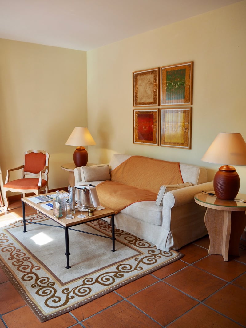 Nous avons posé nos valises dans la Suite Premier qui joue elle aussi la carte de l'authenticité avec sa décoration dans l'esprit de la région. Sur 60m2 sont répartis un salon, une chambre avec dressing attenant idéal pour les séjours prolongés et une salle de bain spacieuse. Elle s'ouvre sur une terrasse intime dont la vue sur les collines et les villages du Haut Var est idéale pour un moment paisible sur un transat ou bien pour prendre l'apéritif avec un verre de vin rosé de la région. Matériaux, couleurs et jeux de lumière ont été pensés pour composer un ensemble très harmonieux.