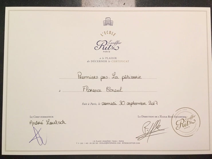 Samedi matin, place Vendôme. Il est un petit peu moins de 9 heures quand je franchis les portes du célèbre Ritz Paris. Tout est encore calme à cette heure-ci sur la place tout comme au sein de l'hôtel. Vous devez sûrement vous demander ce que je fais si tôt dans ce palace parisien mais je suis là pour une bonne raison : je vais passer la matinée dans les cuisines de l'école Ritz Escoffier pour prendre un cours de pâtisserie. Allez c'est parti !