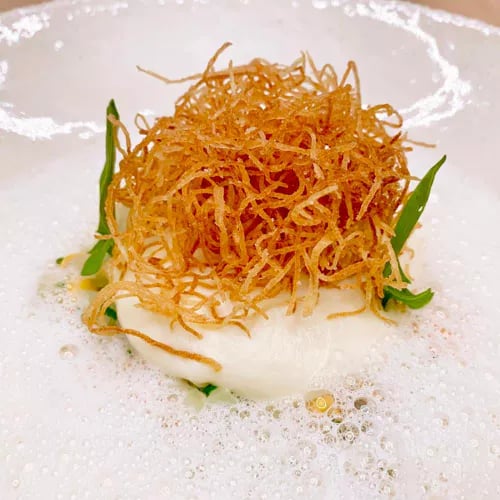 Marc Briand orchestre à Lannion une cuisine d'une précision remarquable où les influences nippones dialoguent avec le terroir breton. Langoustines, homards et saint-pierre d'une fraîcheur irréprochable se parent de yuzu, shiitake et miso dans des assiettes graphiques couronnées d'une étoile Michelin. Le menu du déjeuner offre une entrée accessible dans cet univers raffiné, au sein d'une salle chaleureuse aux tonalités vives.