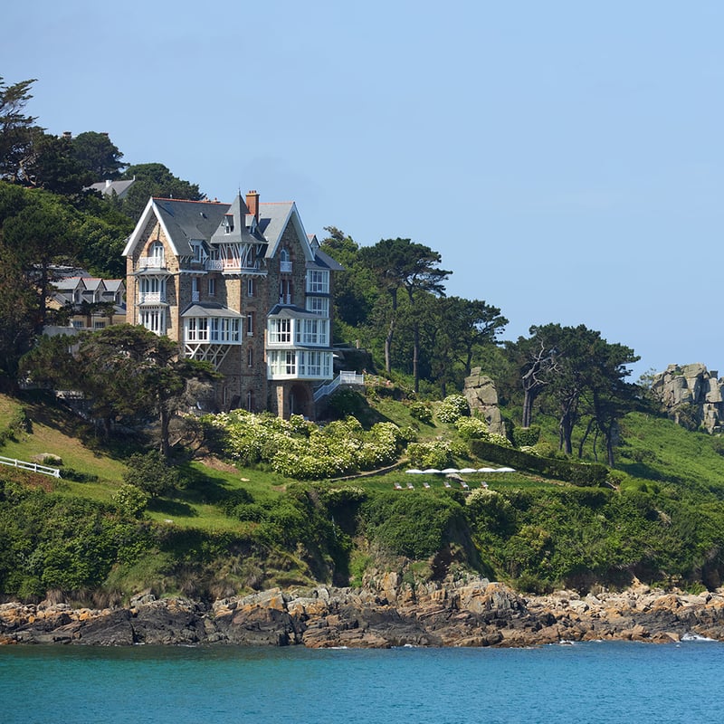 Depuis 1925, quatre générations de la famille Daubé veillent sur ce manoir de granit perché face aux îles Milliau, Molène et Losquet. Ses 18 chambres, habillées de meubles d'époque et de toiles d'artistes bretons, contemplent l'horizon. Sous la charpente en carène inversée façonnée par les Compagnons du Devoir, le chef Anthony Avoine signe une cuisine marine étoilée où le homard règne en maître.