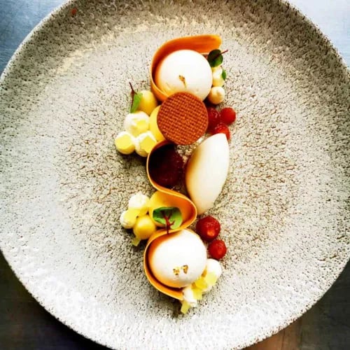 Face aux rives verdoyantes du Gouët, cette table étoilée célèbre le terroir breton à travers une cuisine iodée tournée vers le végétal. Le chef, fort de liens personnels avec pêcheurs et maraîchers locaux, compose des assiettes précises — tartare de Saint-Jacques aux herbes fraîches, raviole de tourteau en bouillon parfumé. La carte des vins, exclusivement bio et biodynamique, prolonge cette quête d'authenticité.