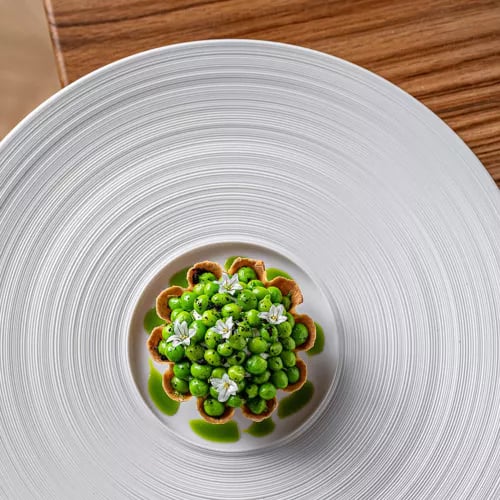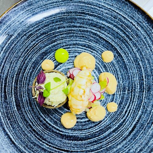 Formé auprès de Dutournier, Lorrain et Ducasse, Julien Lainé cuisine avec l'assurance tranquille de ceux qui ont appris chez les maîtres. Sa table Bib Gourmand navigue entre classicisme assumé—vol-au-vent de veau, fondant au chocolat et sorbet cacao—et élans contemporains, tel ce carpaccio de maigre aux agrumes sanguins ou le bar de ligne rehaussé d'une émulsion de haddock. Deux salles colorées et une cuisine ouverte composent un décor vivant, ancrage gourmand de la Côte de Jade.