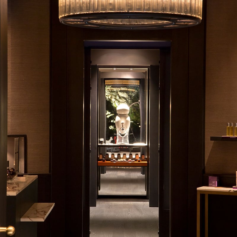 Hélène et Lise Canarelli ont élaboré leur gamme cosmétique NUCCA à partir de plantes sauvages du maquis et d'herbes cultivées dans le potager de l'hôtel, et ce spa de 500 mètres carrés en constitue l'écrin. Sept cabines de soins donnent sur des patios ombragés, tandis que la pierre sculptée, le bois brut et l'eau vive rappellent les paysages corses. Sauna et hammam complètent le parcours thermal.