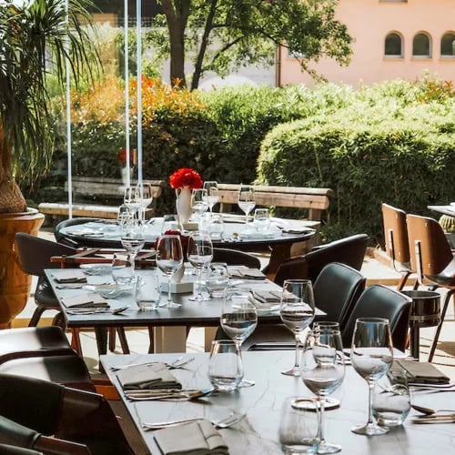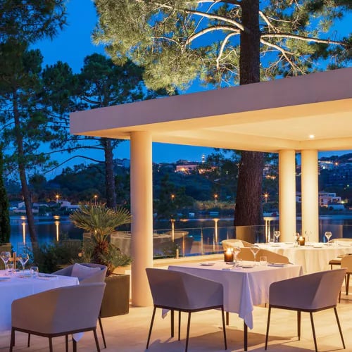 Sous les pins parasols et les palmiers, une vaste terrasse surplombe la vieille ville de Porto-Vecchio dans un calme absolu. La cuisine moderne y déploie une maîtrise technique affirmée : maigre rôti au fenouil d'une cuisson irréprochable, ravioli au citron confit relevé d'une crème au yaourt grec et coriandre. Une table distinguée par le Guide Michelin, où la Méditerranée s'exprime avec précision et caractère.