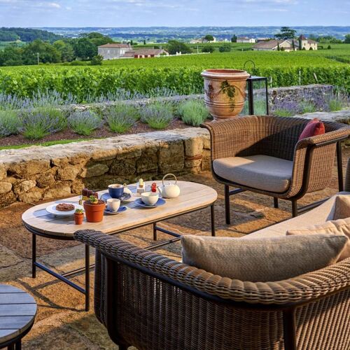 Perché sur les hauteurs de son propre vignoble premier cru, ce château du XVIIIe siècle dévoile huit chambres aux décors singuliers—beffroi, atelier d'artiste—face aux coteaux de Saint-Émilion. La table étoilée Michelin du domaine prolonge l'immersion œnologique, tandis que les familles s'aventurent en Land Rover miniatures électriques entre basse-cour et chasse au trésor. L'élégance campagnarde d'un vignoble en activité.