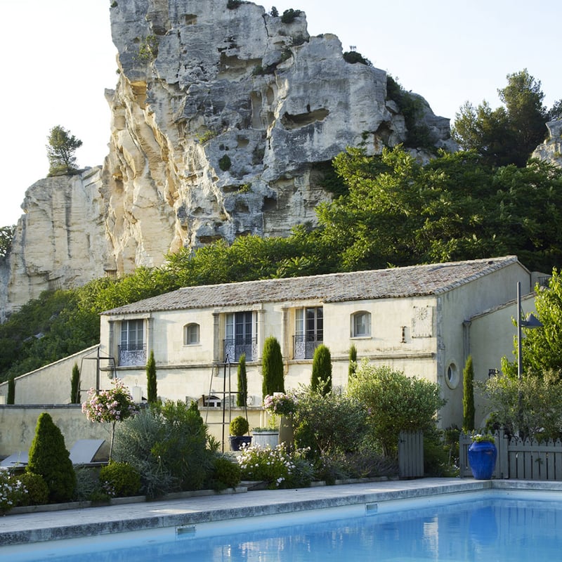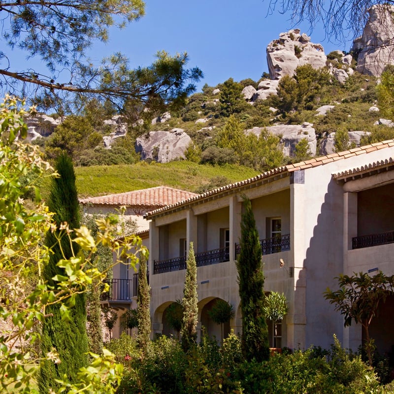 Bastide gréco-romaine entourée de jardins et de terrains de pétanque aux portes de Saint-Rémy-de-Provence, Le Vallon de Valrugues déploie un spa de 600 mètres carrés comprenant huit cabines de soins, un lit de flottaison et deux piscines chauffées. Les suites disposent de jacuzzis ou bassins privatifs, tandis que le restaurant gastronomique et le bistrot côté jardin proposent une cuisine provençale raffinée. Le bar accueille des concerts deux fois par semaine.