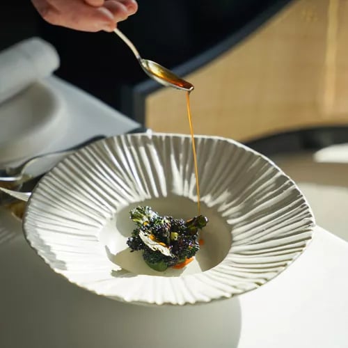 Sous les falaises des Baux, cette table triplement étoilée perpétue l'héritage de quatre générations. Le chef Glenn Viel, saucier d'exception aux racines bretonnes, ravive les cuissons au feu ouvert et joue sur l'inertie thermique, sublimant légumes bio du domaine et huile d'olive de la Vallée des Baux. Céramiques façonnées sur place, cave de trois mille références : un repas qui s'étire volontiers.