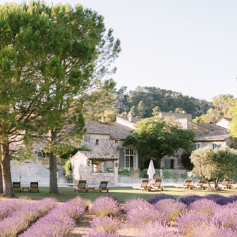 Sept hectares de jardins parfumés de lavande s'étirent au pied du Château des Baux-de-Provence, où cette demeure de 28 chambres cultive un art de vivre résolument provençal—parties de pétanque entre les repas, baignades dans la piscine estivale, verres de vin du domaine au crépuscule. La table décline une cuisine régionale contemporaine puisée au potager, tandis que vélos et routes des vins prolongent l'escapade dans les Alpilles.
