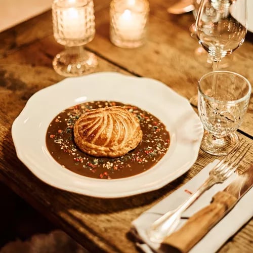 Au pied de la mythique Face de Bellevarde, le chef Antoine Gras compose une cuisine étoilée où chaque produit s'exprime pleinement : langoustine à peine saisie, féra du Léman accompagnée d'oseille et d'une purée de courge aux baies de genièvre. Dans un décor de pierres apparentes et de bois chaleureux, un jeune sommelier défend avec passion les crus savoyards, tandis qu'un spa de mille mètres carrés prolonge l'escapade.