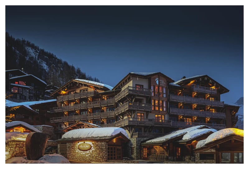 La Mourra Hotel Village fonctionne comme un hameau privé d'altitude : quatre chalets dotés chacun d'une piscine, d'un hammam, d'un sauna, d'une salle de cinéma et d'un chef attitré. Neuf suites hôtelières complètent l'ensemble, avec accès au spa et à un restaurant de cuisine fusion asiatique. Chaque chalet dispose d'une chambre enfants, attirant les familles en quête d'un service cinq étoiles sans compromis sur l'espace.