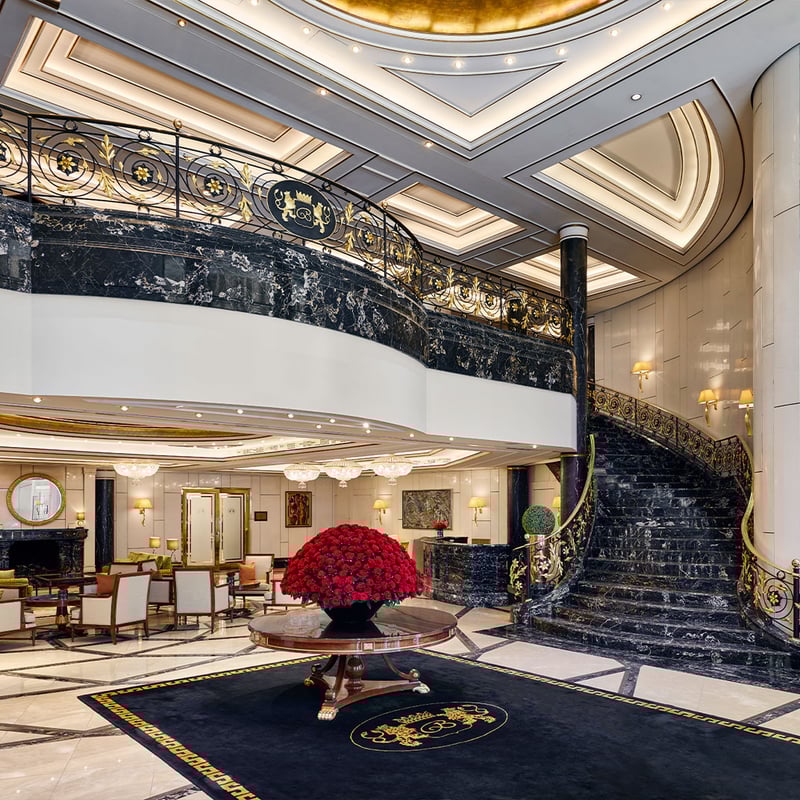 Posé au bord du canal de la Königsallee, cet établissement légendaire accueillit autrefois des tsars russes et dévoile aujourd'hui des vestiges de remparts médiévaux sous ses fondations. Le Lobby Lounge déploie plafonds à caissons et soieries, tandis que les chambres offrent de vastes salles de bains en marbre italien dotées de baignoires profondes. Le spa avec piscine intérieure, saunas finlandais et hammam complète ce refuge urbain d'une élégance historique assumée.