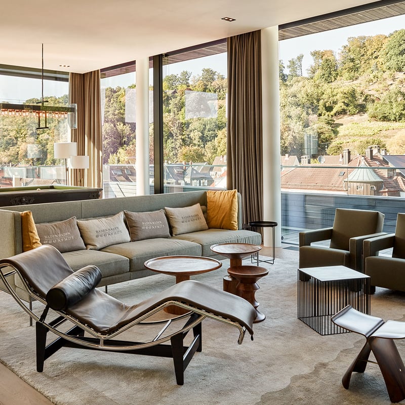 Institution de 1872 bordant l'Oos et surplombant la Lichtentaler Allee, ce palace conserve ses intérieurs d'époque garnis d'antiquités authentiques, récemment ravivés avec délicatesse. Son spa, référence absolue dans une ville vouée aux cures thermales, puise aux traditions européennes comme asiatiques. Chaque chambre dispose d'une terrasse privée et d'une salle de bains en marbre ; les familles profitent d'un club enfants aux jouets en bois raffinés.