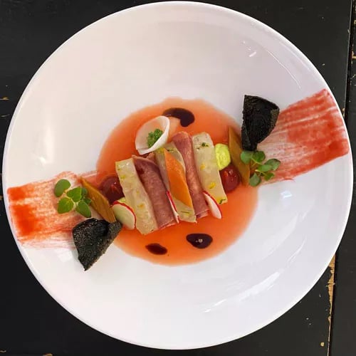 Au sein de l'Hôtel Traube Tonbach, le chef Florian Stolte orchestre une table étoilée où le minimalisme dicte chaque geste. Ses deux menus en six services—dont un végétarien—tissent des accents asiatiques dans une trame française classique, privilégiant la pureté des produits : langoustine en carpaccio cru, bœuf Wagyu relevé d'une simple pointe de sel. L'atmosphère feutrée et le service attentionné complètent cette expérience raffinée.