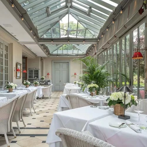 La véranda du Brenners Park-Hotel baigne dans la lumière grâce à ses baies vitrées ouvrant sur les jardins luxuriants de l'établissement. Une cuisine française classique aux accents saisonniers s'y décline à la carte ou en menus composés, tandis qu'un déjeuner en trois services ponctue la semaine. La terrasse prolonge l'expérience aux beaux jours, et les propositions végétariennes témoignent d'une carte pensée pour des repas raffinés sans hâte.