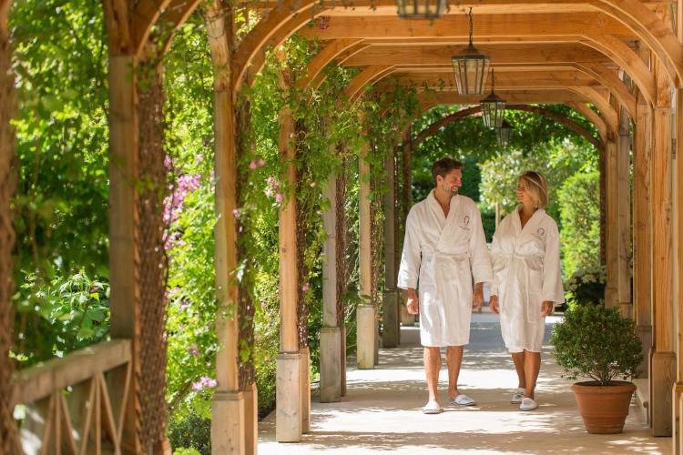 Sur 4 500 mètres carrés au creux de la Forêt-Noire, ce sanctuaire thermal déploie neuf bassins distincts : piscines chauffées intérieures et extérieures, bassin d'eau salée, étang naturel et circuit de marche aquatique. Les soins Biologique Recherche, Thalgo et La Biosthétique succèdent aux bains de vapeur aux herbes. La détente se prolonge dans les jardins soignés ou près d'un feu crépitant au salon.