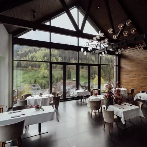 De vastes baies vitrées inondent ce lodge moderniste de lumière forestière, ses espaces à double hauteur ouvrant sur les bois ancestraux de Baiersbronn. Les 153 chambres, déclinées en blancs apaisants et tons naturels, offrent balcons et terrasses face aux vallées verdoyantes. Neuf cabines de soins, trois piscines, hammam et sauna composent un programme bien-être complet, tandis que cinq restaurants célèbrent la cuisine généreuse de la Forêt-Noire.