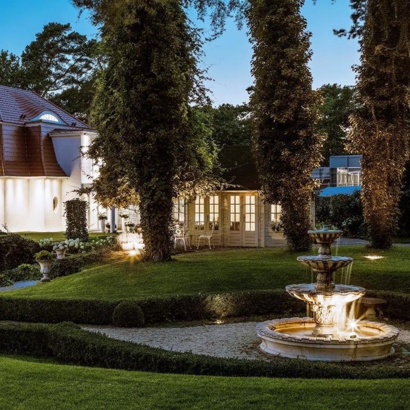 Deux villas aux lignes Côte d'Azur, drapées d'un blanc immaculé, contemplent le Märkisches Meer depuis Bad Saarow. Treize chambres seulement, un spa d'une ampleur rare avec jacuzzi, sauna et doubles bassins, des jardins qui descendent vers le lac : l'ensemble compose une retraite pour amateurs de quiétude raffinée et d'élégance épurée, loin des grands ensembles hôteliers.