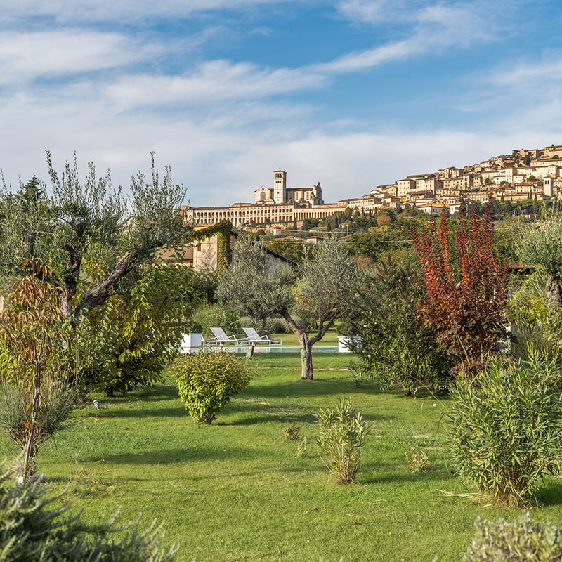 Les jardins jadis cultivés par des moines bénédictins demeurent l'âme de cette adresse confidentielle de douze chambres, à quelques pas de la Basilique Saint-François. Poutres apparentes et parquets anciens confèrent aux espaces une élégance sobre, tandis qu'une piscine extérieure s'inscrit dans le décor verdoyant. La table met à l'honneur les saveurs de l'Ombrie, séduisant les voyageurs en quête d'authenticité et de sérénité.