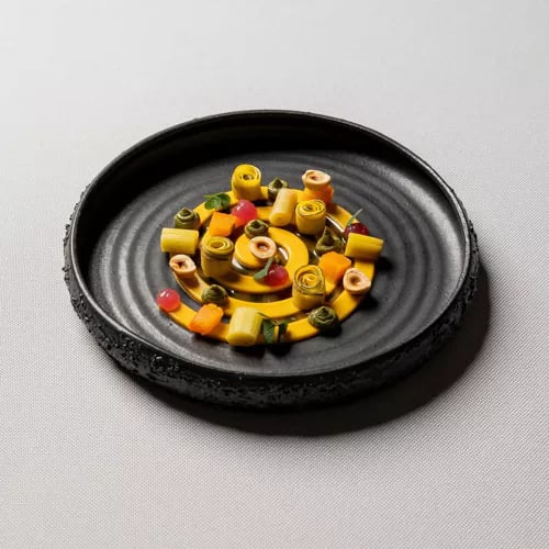 Accessible par une route sinueuse sur le plateau d'Asiago, La Tana Gourmet impose d'emblée son caractère radical. Alessandro Dal Degan y compose un long menu dégustation sans choix, sans sel ni sucre, où chaque assiette déploie pourtant des saveurs d'une intensité remarquable. Le chef commente lui-même chaque plat en salle, tandis qu'Enrico Maglio propose des accords boissons audacieux. Une étoile Michelin et une étoile verte saluent cette cuisine vénitienne engagée.