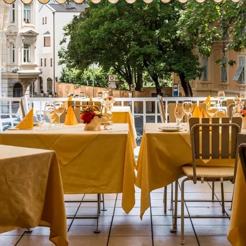 L'hôtellerie de la vallée puise dans ce double héritage. Les auberges historiques des Portici ont été rénovées dans un style alpin contemporain, tandis que les établissements thermaux des collines environnantes proposent des traditions hydrothérapiques liées aux sources de montagne. La table suit le répertoire sud-tyrolien : canederli et speck côtoient des interprétations modernes du terroir local, avec des cartes de vins dominées par le Sylvaner, le Kerner et les blancs d'Eisacktaler. L'aperitivo se déroule dans les bars à vin de la vieille ville, où la tradition viennoise du café persiste sous les arcades médiévales.