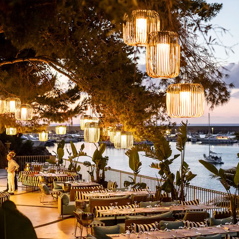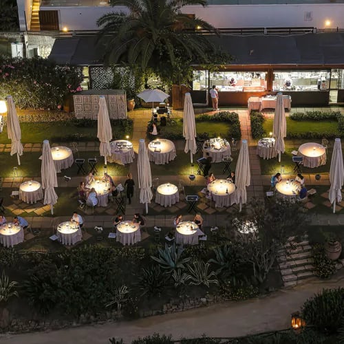 Les soirs d'été, le jardin de ce restaurant d'hôtel de charme s'ouvre sur la baie, les faraglioni de Caldura et la silhouette imposante de la Rocca. Le chef Dario Pandolfo puise dans son parcours au sein de grandes maisons italiennes et internationales pour sublimer les produits siciliens avec audace et précision. Son menu Fiori di Luna célèbre légumes, herbes et fleurs de l'île, tandis qu'une démarche anti-gaspillage guide chaque assiette.