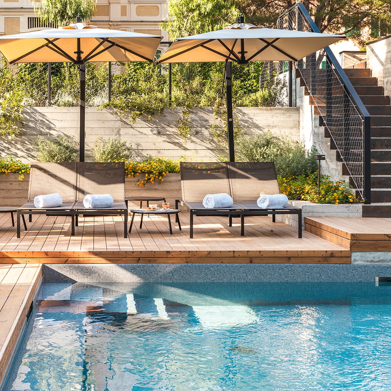 Entre jardins luxuriants et rivage ligure, Capitolo Riviera affirme une architecture contemporaine où béton géométrique et végétation s'entrelacent. Ses 37 chambres au décor épuré, rehaussées de bois naturel et de balcons privés, contemplent mer ou collines. Le spa Onde décline jacuzzi, sauna et hammam, tandis que le restaurant Botanico revisite la cuisine méditerranéenne. Le bar Liquido propose une mixologie créative, prélude idéal aux sentiers côtiers de Nervi.