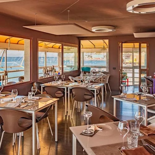 Face au panorama du Porto Antico à travers de grandes baies vitrées, cette table étoilée célèbre les produits de la mer ligure avec une audace contemporaine. Le chef Marco Visciola exécute en salle ses spaghetti au cocktail Martini, relevés de beurre aux algues, de caviar et de gin Taggiasco nébulisé. Sa lotte rôtie au laurier, houmous d'amande et câpres en Mugnaia confirme une maîtrise technique au service du territoire.