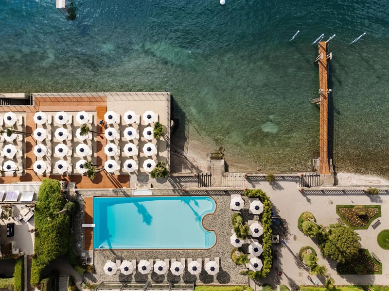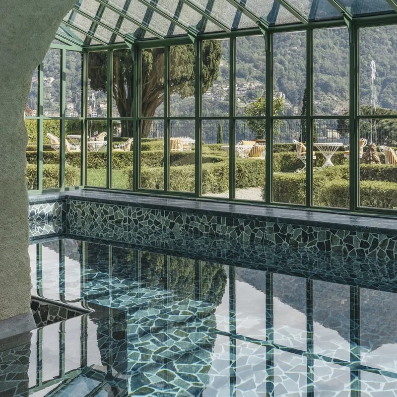 Sur six acres de jardins botaniques centenaires, trois villas néoclassiques ayant appartenu à la cantatrice Giuditta Pasta composent ce domaine lacustre. La piscine flottante, posée directement sur les eaux du lac, rivalise avec un spa souterrain doté d'une grotte, d'une salle au sel himalayen et d'un sauna finlandais. Le restaurant L'ARIA propose une cuisine fusion nippo-italienne face au panorama alpin, tandis que les 76 chambres offrent balcons et terrasses privés.