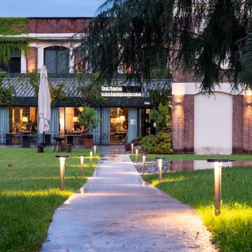Dans une ancienne filature reconvertie aux lignes industrielles épurées, le chef Davide Marzullo orchestre une cuisine étoilée aux accents résolument contemporains. Son risotto signature au lait de chèvre, câpres, réglisse et soja illustre une approche sans frontières, tandis que le menu végétarien Istinto révèle une maîtrise technique comparable. Une halte gastronomique précieuse aux portes du lac de Côme.