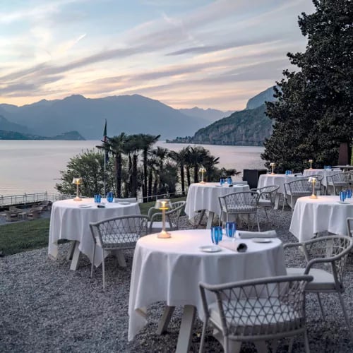 Sur la rive occidentale du lac, ce palais Belle Époque déploie son parc botanique centenaire, héritage des jardins de la Villa Carlotta, où prospèrent essences tropicales et oliviers. La piscine flottante WOW, suspendue au-dessus des eaux, ouvre sur les cimes des Grigne. À La Terrazza Gualtiero Marchesi, la cuisine perpétue l'héritage du maître italien, tandis que le T Spa propose les soins historiques de l'Officina di Santa Maria Novella.